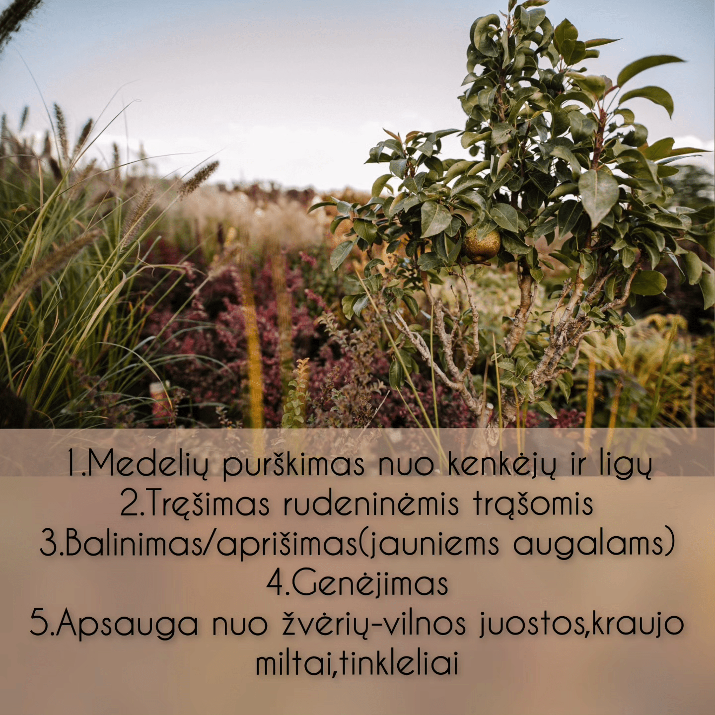 Nugenėsime Jūsų dekoratyvinius augalus,bei vaiskrūmius, vaismedžius. Suformuosime produktyvias šakas, pagerinsime derliaus, bei vaizdinę kokybę. Taip pat atliekame medelių balinimo darbus. Galime surengti genėjimo mokymus.